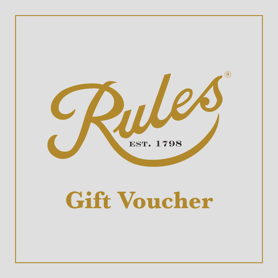 Treat yourself or a loved one to a Rules gift voucher. The voucher can only be redeemed within our restaurant, and cannot be used for online purchases.